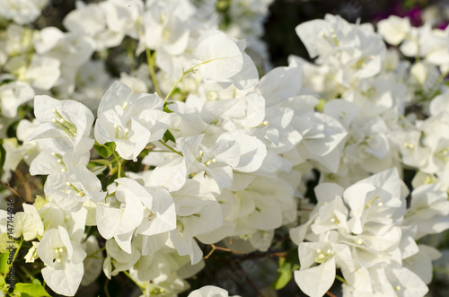 Obraz premium Beautiful bougainvillea blooming. White flowers. Branches closeup