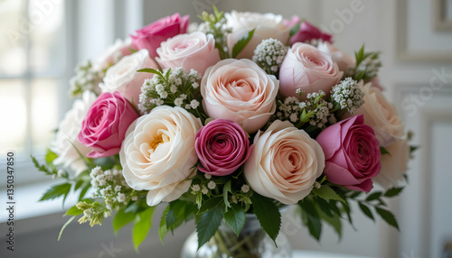 Fototapeta premium Beautiful bouquet of pink and white roses perfect for Mothers Day Valentines...