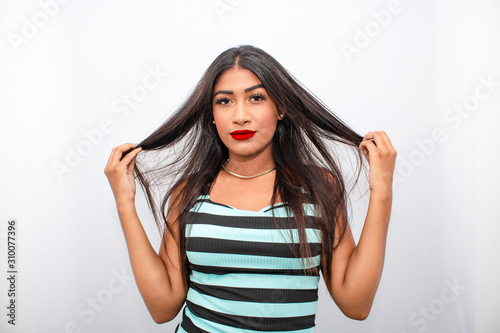 Obraz premium Beautiful Brazilian Brunette Model with Straight Hair