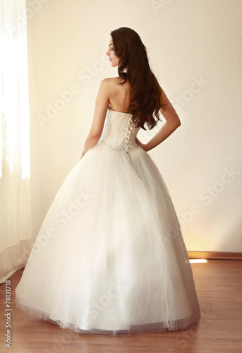 © indiraswork, Fototapeta premium Beautiful bride in white wedding dress mariage