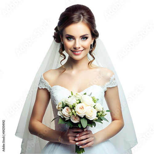 © shahzaib, Naklejka premium beautiful bride with bouquet