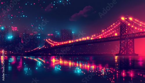 © SBAPNA- GRAPHIC, Naklejka premium Beautiful bridge architecture illuminated at night with colorful LED lights