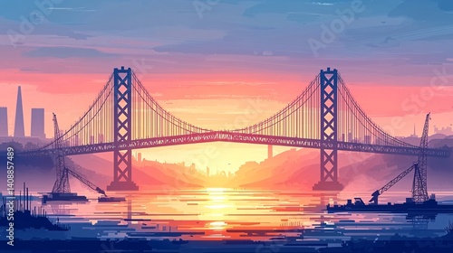 © picUpUp, Fototapeta premium Beautiful bridge in the sunset
