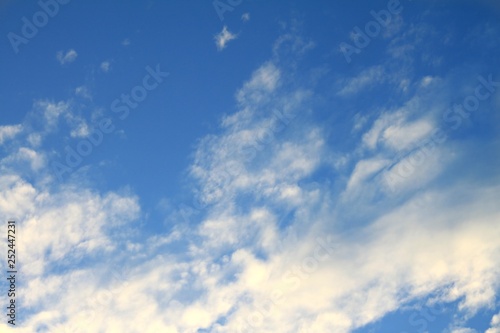 Fototapeta premium Beautiful bright delicate white clouds on a background of blue summer sky