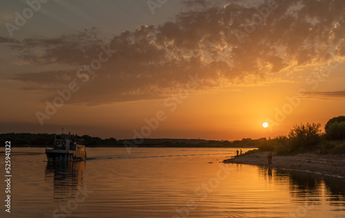 © Ruslan Leskov, Obraz premium Beautiful bright dramatic sunset over the river