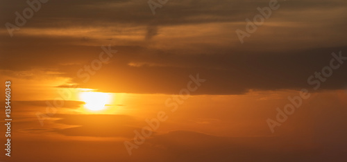 Fototapeta premium Beautiful bright evening sunset sky with dark clouds. Sunset sky background.
