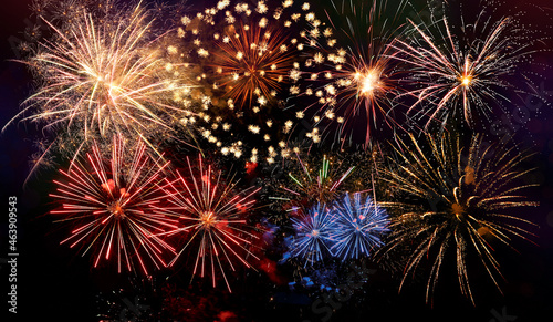 Naklejka premium Beautiful bright firework lighting up night sky