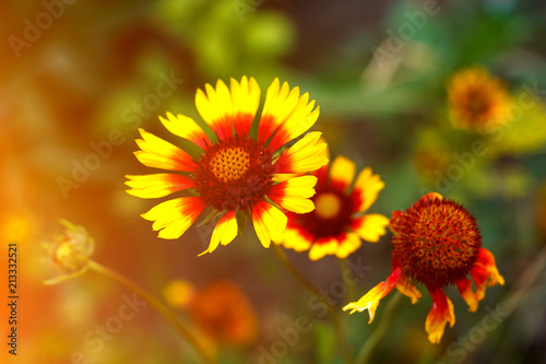 © Loraliu, Fototapeta premium Beautiful bright flower helenium on blooming green meadow