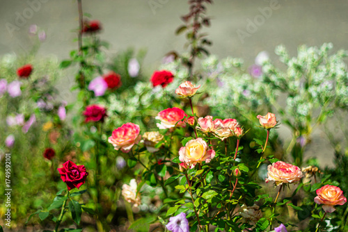 © Anatoliy, Obraz premium Beautiful bright flowers in a flowerbed in the last days of summer.