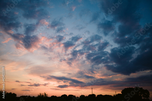Fototapeta premium beautiful bright sunset, expressive blue-orange sky. Evening time