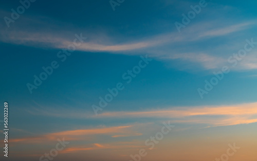 Fototapeta premium Beautiful bright sunset sky with clouds. Sunset sky background