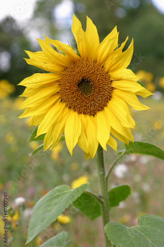 Fototapeta premium Beautiful bright yellow sun flowers in farm field in Queensland Australia
