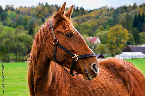 © VinyLove Foto, Naklejka premium beautiful brown horse in the meadow