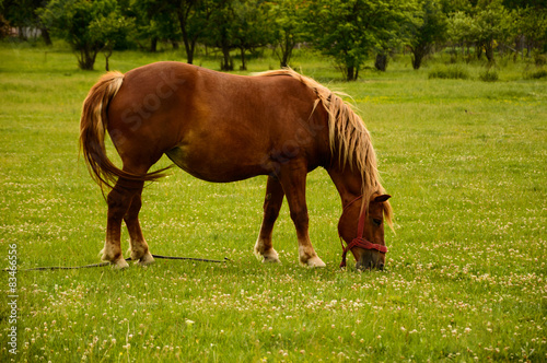 © sichimsergiu, Fototapeta premium Beautiful Brown Horse on a field