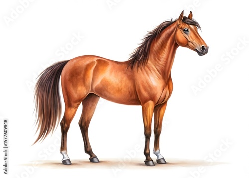 © designsy24 , Naklejka premium Beautiful brown horse with flowing mane and tail standing gracefully