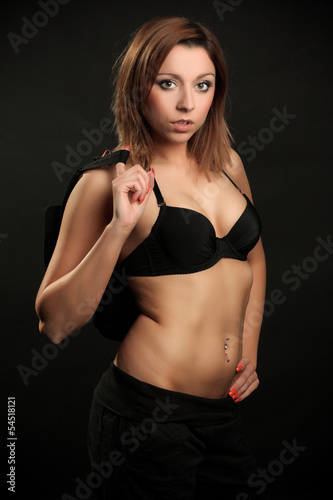© speldin, Fototapeta premium Beautiful brunette in the studio