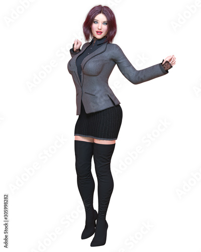 Fototapeta premium Beautiful brunette woman in black blazer and long boots.