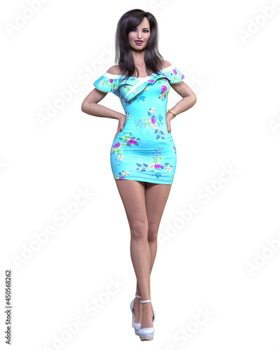 Fototapeta premium Beautiful brunette woman in short evening dress.
