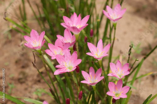 © Photology, Fototapeta premium Beautiful bunch of pink lily flowers growing on a roadside