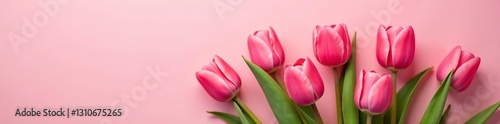 © Somnuek, Fototapeta premium Beautiful bunch of tulip flowers against soft pink backdrop, decoration, floral, feminine
