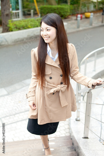 © one, Fototapeta premium Beautiful business woman in the town. Portrait of asian.