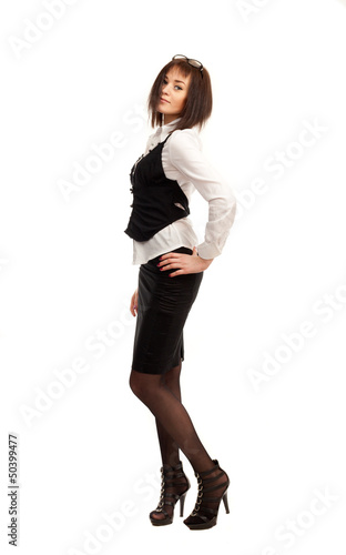 © oshepkov, Fototapeta premium Beautiful business woman standing on a white background.