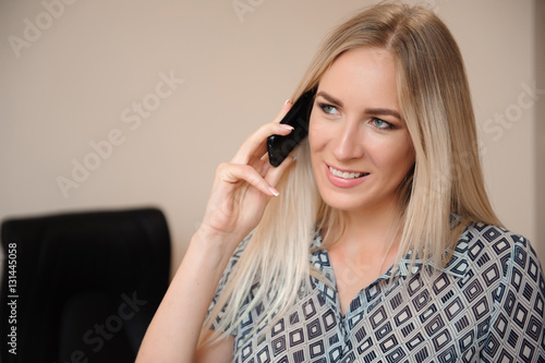 Fototapeta premium Beautiful business woman talking on mobile phone. Young female m