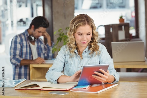 Fototapeta premium Beautiful businesswoman using table in office