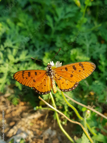 © Vijayvarma, Obraz premium beautiful butterfly acraea terpsicore on green background