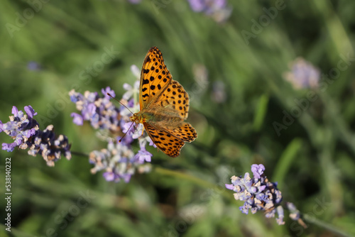 © New Africa, Obraz premium Beautiful butterfly in lavender field on sunny day, closeup