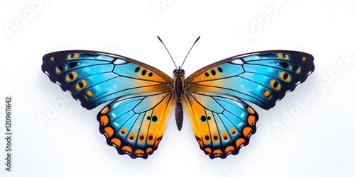 © Kashaf, Fototapeta premium Beautiful butterfly isolated on a white background, with blue and orange coloring,