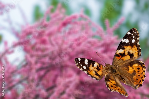 Obraz premium beautiful butterfly on nature background with flowers