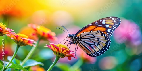 Fototapeta premium Beautiful butterfly perched delicately on a colorful flower , nature, insect,...