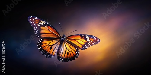 Fototapeta premium Beautiful butterfly soaring gracefully against a dark background, butterfly,...