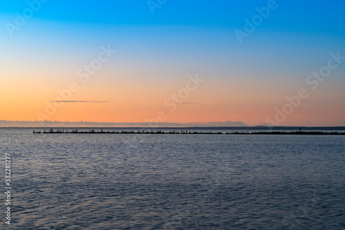 © valdisskudre, Naklejka premium Beautiful calm sunrise over the Baltic sea