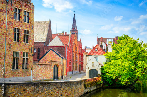 Naklejka premium Beautiful canal and traditional houses in the old town of Bruges (Brugge),...