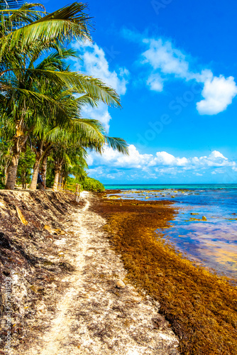 Obraz premium Beautiful Caribbean beach totally filthy dirty nasty seaweed problem Mexico.