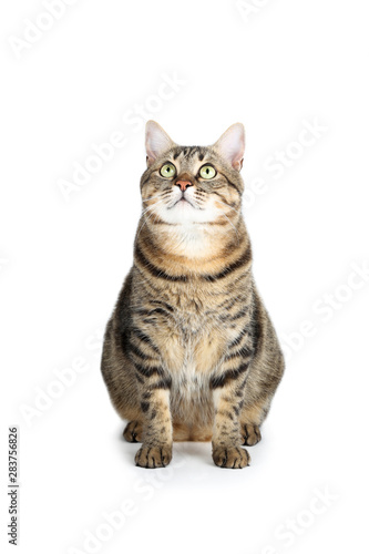 Obraz premium Beautiful cat sitting on white background