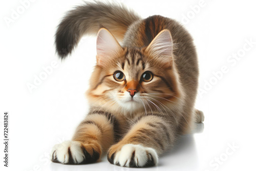 © Igor, Obraz premium beautiful cat stretching isolated on white background. ai generative