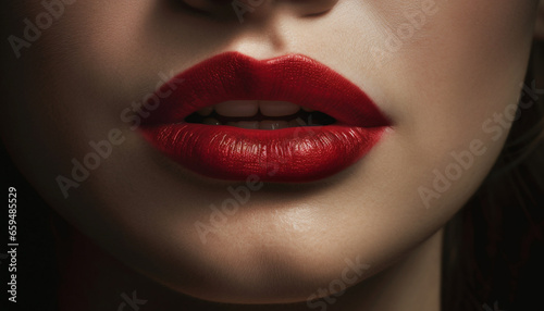© djvstock, Fototapeta premium Beautiful caucasian woman with shiny lips exudes sensuality and elegance generated by AI