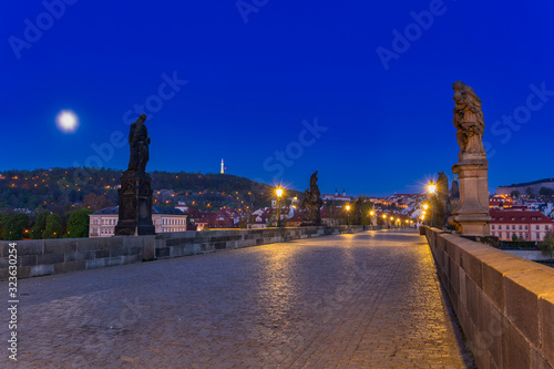 © Patryk Kosmider, Obraz premium Beautiful Charles bridge in Prague at night, Czech Republic