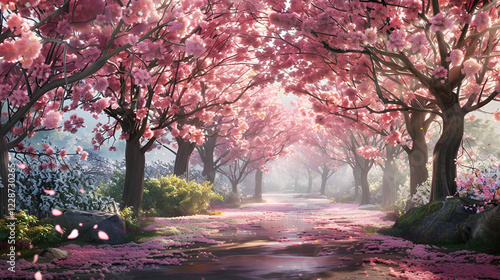 Naklejka premium beautiful cherry blossom park in full bloom and vibrant colors