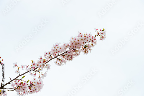Fototapeta premium Beautiful cherry blossom sakura in spring time over blue sky.