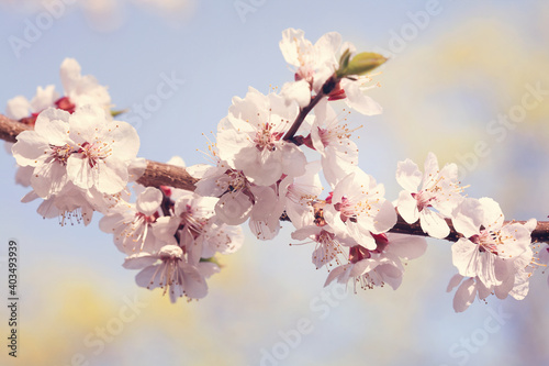 © missty, Fototapeta premium Beautiful cherry blossom sakura in spring time over blue sky.