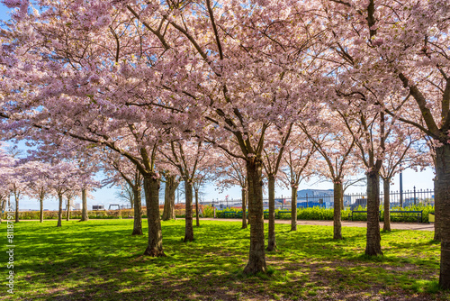 Naklejka premium Beautiful cherry blossom trees in Langelinie park in Copenhagen, Denmark