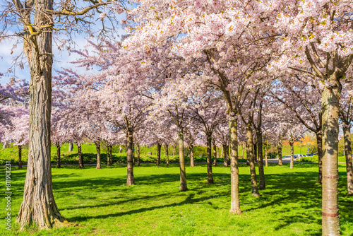 Naklejka premium Beautiful cherry blossom trees in Langelinie park in Copenhagen, Denmark