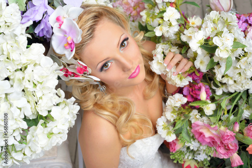 © Dmitriy Raykin, Fototapeta premium beautiful chic woman around the flowers.