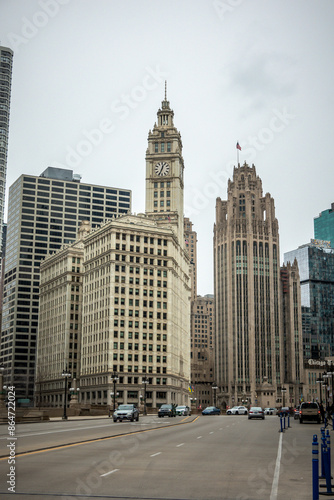 Naklejka premium Beautiful chicago city skyline and city street scenes