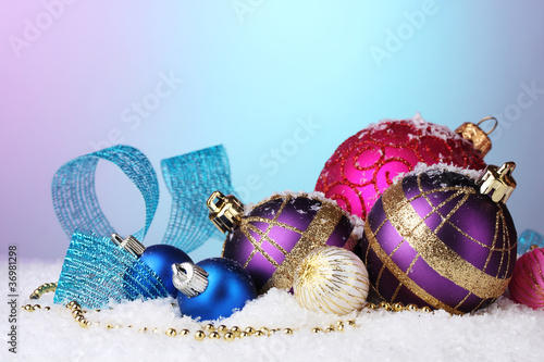 © Africa Studio, Naklejka premium beautiful Christmas balls and cones on snow on bright background