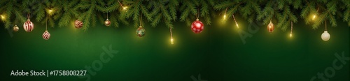 © ludmila, Naklejka premium Beautiful Christmas banner with red baubles on fir branches